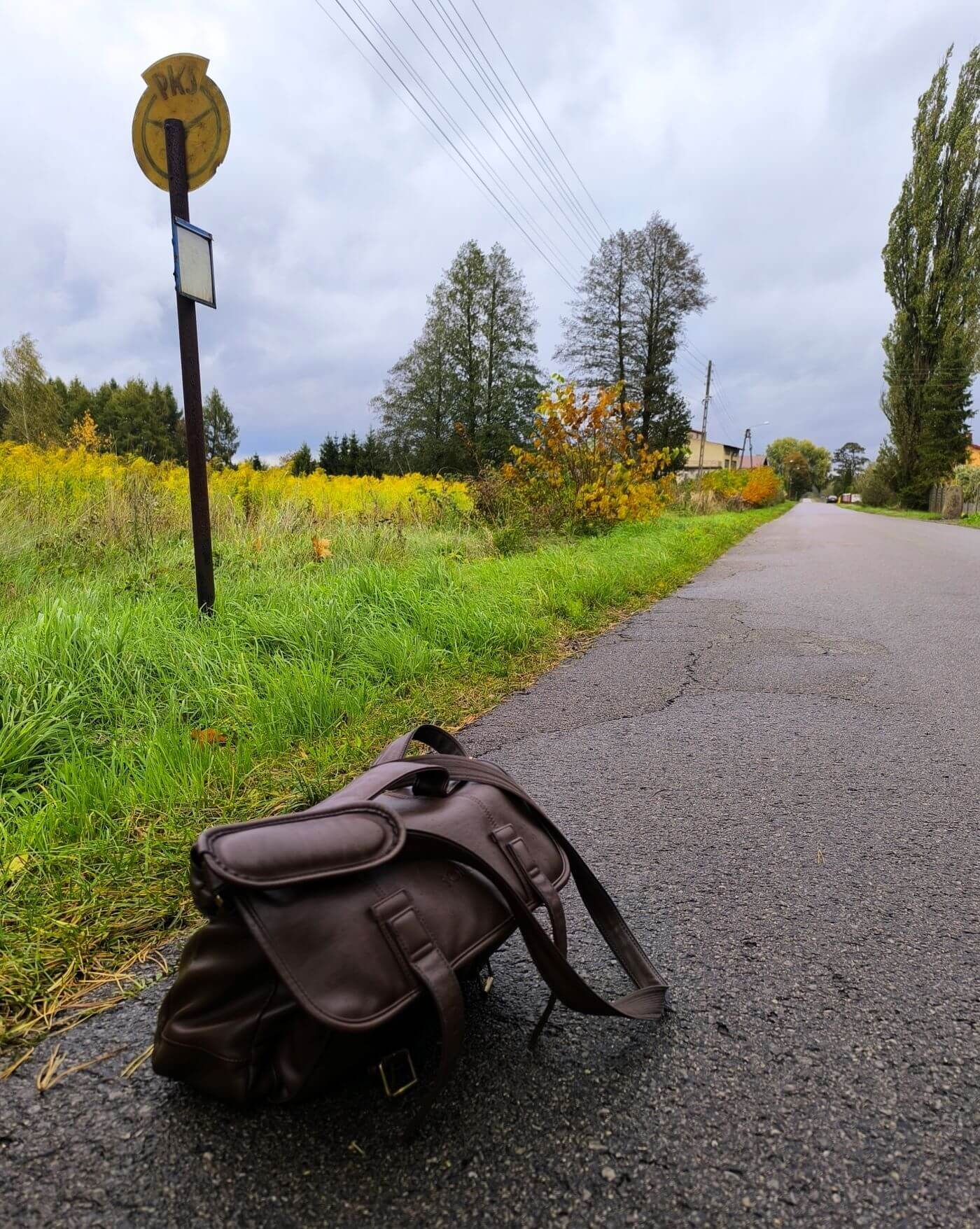 W ciągu kilku minut docieram na przystanek z betonową wiatą, regulaminowym koszem i rozkładem jazdy. Niegdyś stawał tam PKS, o czym świadczy metalowa rura pokryta warstwą rdzy z okrągłym, nadgryzionym zębem czasu logiem oraz nieaktualną rozpiską kursów. Otaczający mnie świat, poza materialnym wymiarem w postaci domów, pól i łąk oraz miejscowej fauny, wygląda jakby wrócił właśnie z długiej imprezy i jeszcze nie wytrzeźwiał. Z jednej strony dopisuje mu humor poparty procentami, okraszony gwieździstym nieboskłonem, z drugiej, tuż za rogiem, czai się świadomość epickiego kaca.