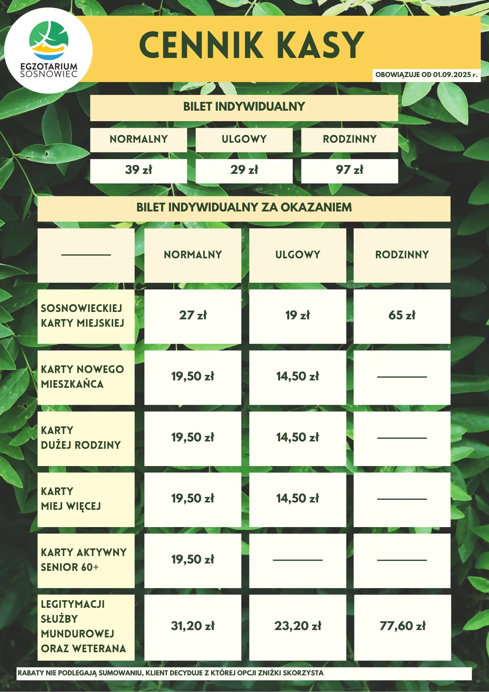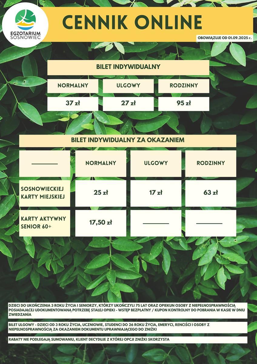 Cennik biletów: