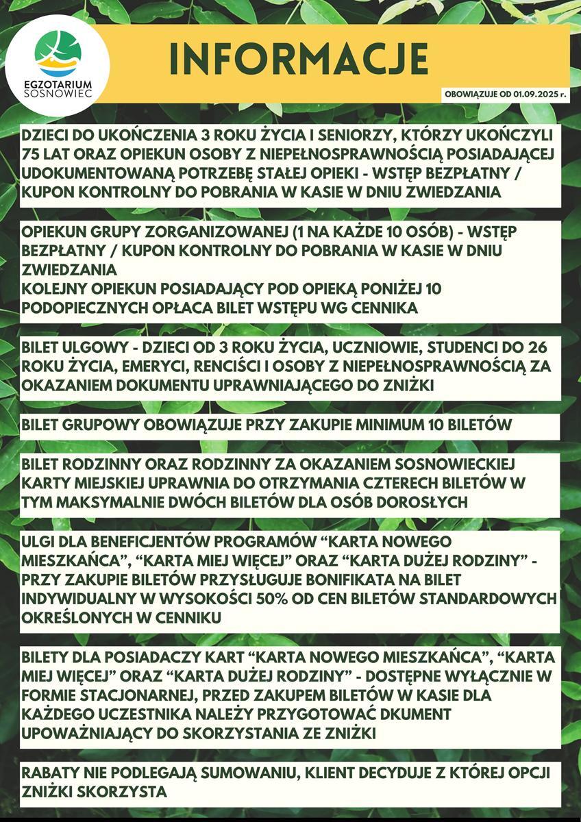 Bilet wstępu: 10 zł. m.in. osoby z niepełnosprawnością, seniorzy 70+