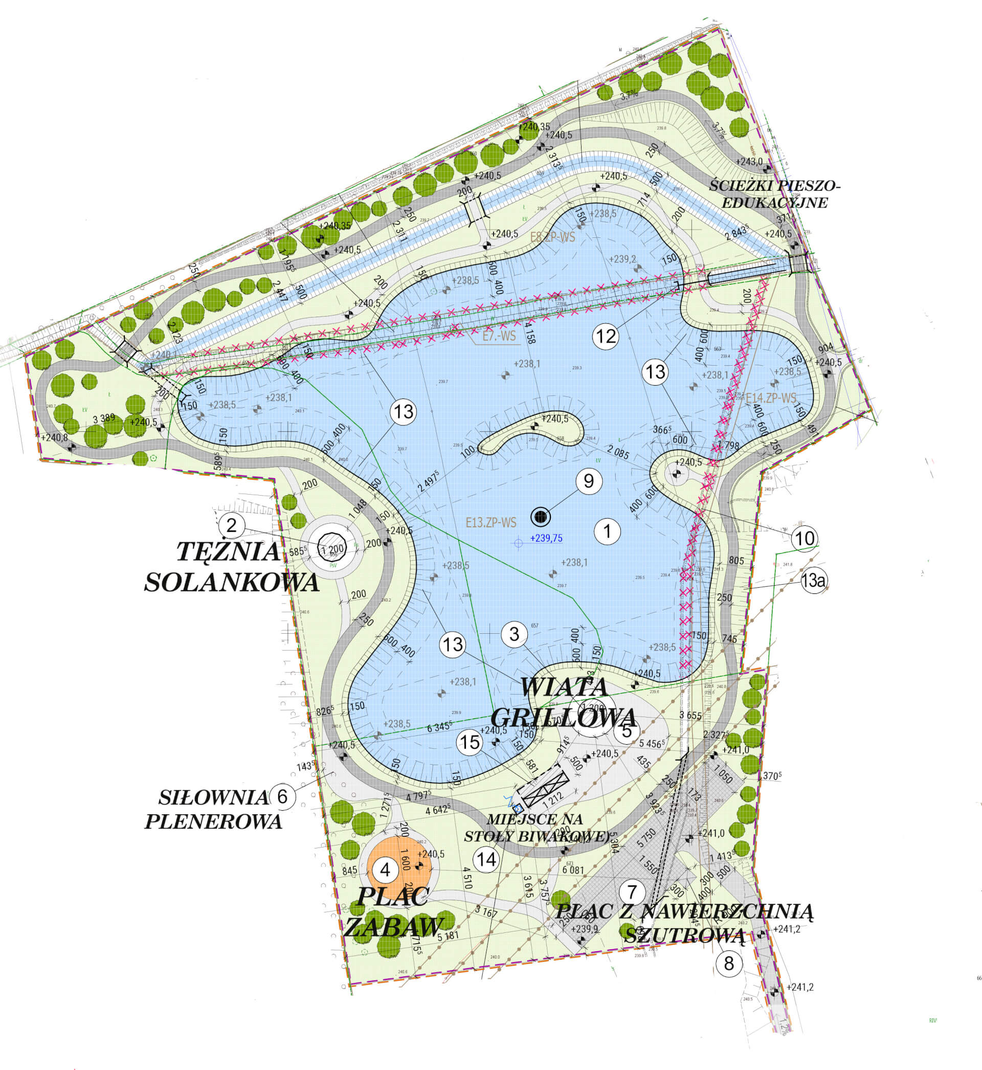 - Budowę stawu wraz z niezbędną infrastrukturą techniczną.