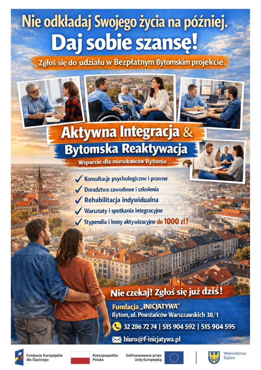 📍 Biuro projektu: Fundacja „INICJATYWA” Bytom, ul. Powstańców Warszawskich 38/1